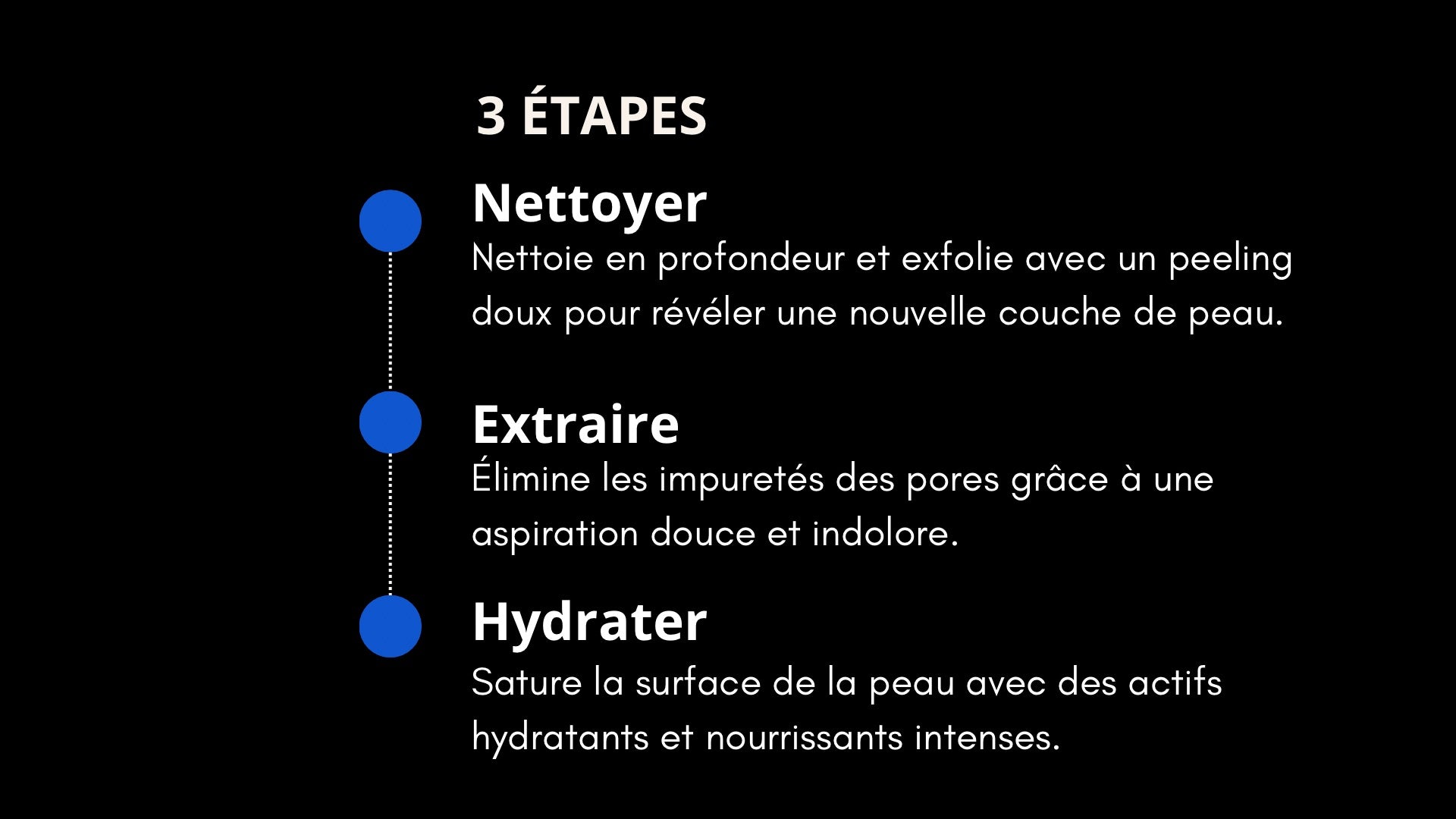 Seul Hydrafacial utilise une technologie brevetée pour nettoyer, extraire et hydrater la peau. Le système Vortex-Fusion® permet de déloger et d’éliminer aisément les impuretés de façon totalement indolore, tout en délivrant simultanément des solutions hydratantes riches en antioxydants, peptides et acide hyaluronique. Le soin est entièrement personnalisable grâce au choix des embouts, des concentrations de peelings, des sérums boosters, des lumières LED et du drainage lymphatique pour cibler des conditions cutanées spécifiques. Les résultats sont visibles dès le premier soin.